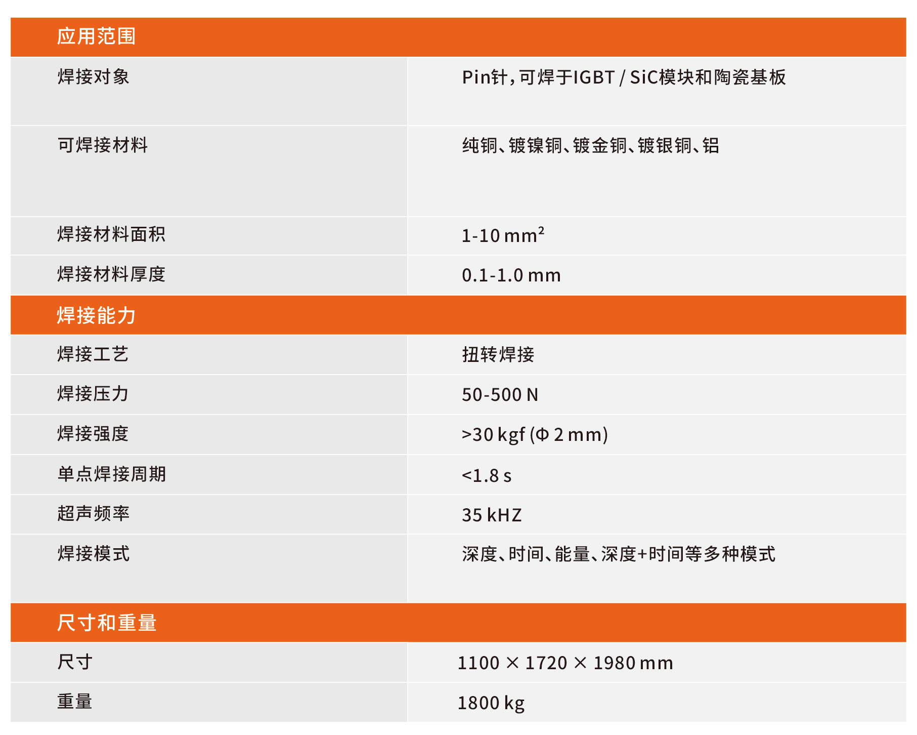 全伺服控制,精确控制焊接压力和位移,焊接过程可分多段